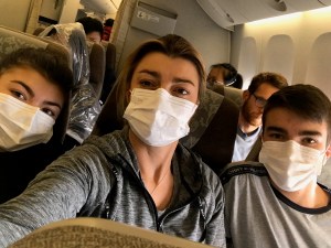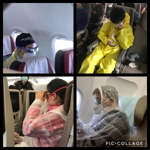Alors que les chiffres des malades s’affolent en France et se ralentissent sérieusement en Chine, Fabiola décide de rentrer chez elle, à Shanghai. Arrivée à l’aéroport Charles-de-Gaulle, même choc, presque personne ne porte de masque à part eux, et surtout, ils se font dévisager comme des pestiférés ! Même la pharmacienne (où elle achète des thermomètres frontaux pour les copines car c’est en rupture de stock à Shanghai, et on va en avoir besoin tous les jours à la reprise de l’école…) ne voit pas l’intérêt de se protéger… A la porte d’embarquement, changement d’ambiance : vol China Eastern, personnel et majorité des passagers chinois, tout le monde en masque (parfois de plongée !), gants, et parfois en panoplies de protection des plus farfelues…