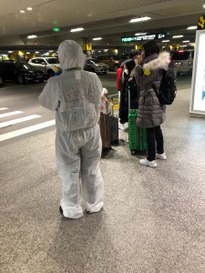 Effectivement, dès l’atterrissage de son vol Séoul-Shanghai, plusieurs employés de l’aéroport de Hongqiao montent dans l’avion et se dirigent vers lui à cause de son passeport italien. Il lui sera posé de nombreuses questions (souvent plusieurs fois les mêmes), sur ses derniers voyages en Italie (qui dataient de décembre), mais rien du tout sur la Corée. Sa résidence à Suzhou n’étant pas autorisée à héberger quelqu’un en quarantaine, on lui confirme qu’il doit se rendre dans un hôtel habilité par les autorités. Heureusement, il avait anticipé et son service des ressources humaines avait déjà travaillé sur le sujet pour lui permettre de faire cette quarantaine près de ses bureaux (donc avec moins de monde) et non à Shanghai. Au bout de 4h d’âpres négociations (et c’est là où sa maitrise du mandarin l’a beaucoup aidé), il peut enfin quitter l’aéroport, avec son chauffeur (après nombreuses vérifications aussi sur celui-ci), direction Zhangjiagang.
