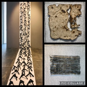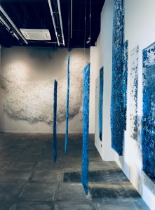 Pour finir en beauté, je vous encourage à rendre visite à Ana et Agnès de la galerie Art+ Shanghai, une des rares galeries à avoir rouvert sur Shanghai ! Leur nouvelle exposition met en scène Shi Jindian, artiste chinois renommé, célèbre pour ses sculptures et installations réinterprétées au fil de fer. Partant d’un objet du patrimoine historique, dans une démarche de destruction et reconstruction, il sait donner un sens artistique et esthétique à des portes anciennes, une Jeep ou un vieux side-car… Il travaille à présent de façon plus abstraite et symbolique, avec un rapport toujours très physique à la matière, brouillant les frontières entre art, artisanat et poésie. Il présente ici des sculptures, des installations et peintures, sur les thèmes des lignes, du fil de fer et du bois brûlé. Le rendu esthétique est magique, aérien et symbolique. De plus, la galerie expose aussi quelques tableaux de Shao, fille de Jindian, à la fois influencée par son père et très différente dans son approche créatrice. Un joli dialogue père-fille ! Mes coups de cœur ? Carbonized Line 2 et les aériennes Blue Pieces…
