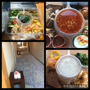 Bienvenue au Shazhou Lake Hotel ! Andrea est donc depuis quelques jours en quarantaine dans cet hôtel au nom prometteur, tout comme deux autres personnes au même étage. Sa chambre est tout à fait correcte, avec deux lits simples, pour pouvoir dormir dans des draps propres au bout d’une semaine, sans que du personnel n’ait besoin d’entrer… Il y faisait très froid lors de son « check-in », les fenêtres étant volontairement bloquées entrouvertes, « pour faire circuler l’air » lui a-t-on expliqué ! Il a réussi à obtenir un radiateur qu’il fait fonctionner 24h/24. Il a reçu une liste des consignes à respecter, l’heure à laquelle il doit poser sa poubelle devant sa porte, celle des deux passages quotidiens du médecin venant contrôler sa température etc. A part celui-ci, « vêtu de la fameuse combinaison de cosmonaute », il ne voit personne et ne peut pas sortir de sa chambre.