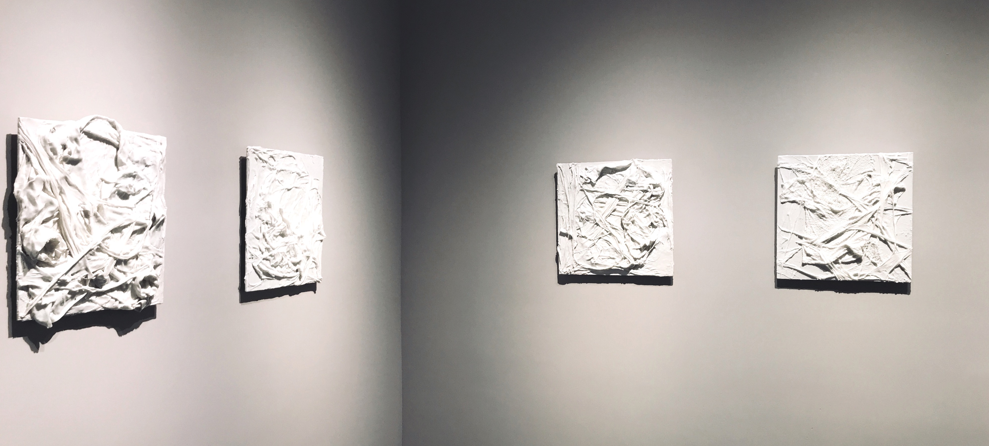 Au début était le cocon. C’est notre socle, notre histoire, nos racines. Puis le temps fait son travail, ajoute une couche, en déchire une autre. Les céramiques de Wan Qiong partent d’un canevas, d’une pièce de tissu, d’une chemise même, sur laquelle se mêlent et s’entrelacent matières, fils et autres fibres, parfois en harmonie, parfois totalement éclatées, comme explosées ou brûlées ! Le froid et le chaud, la brillance du vernis et le brut des aspérités…