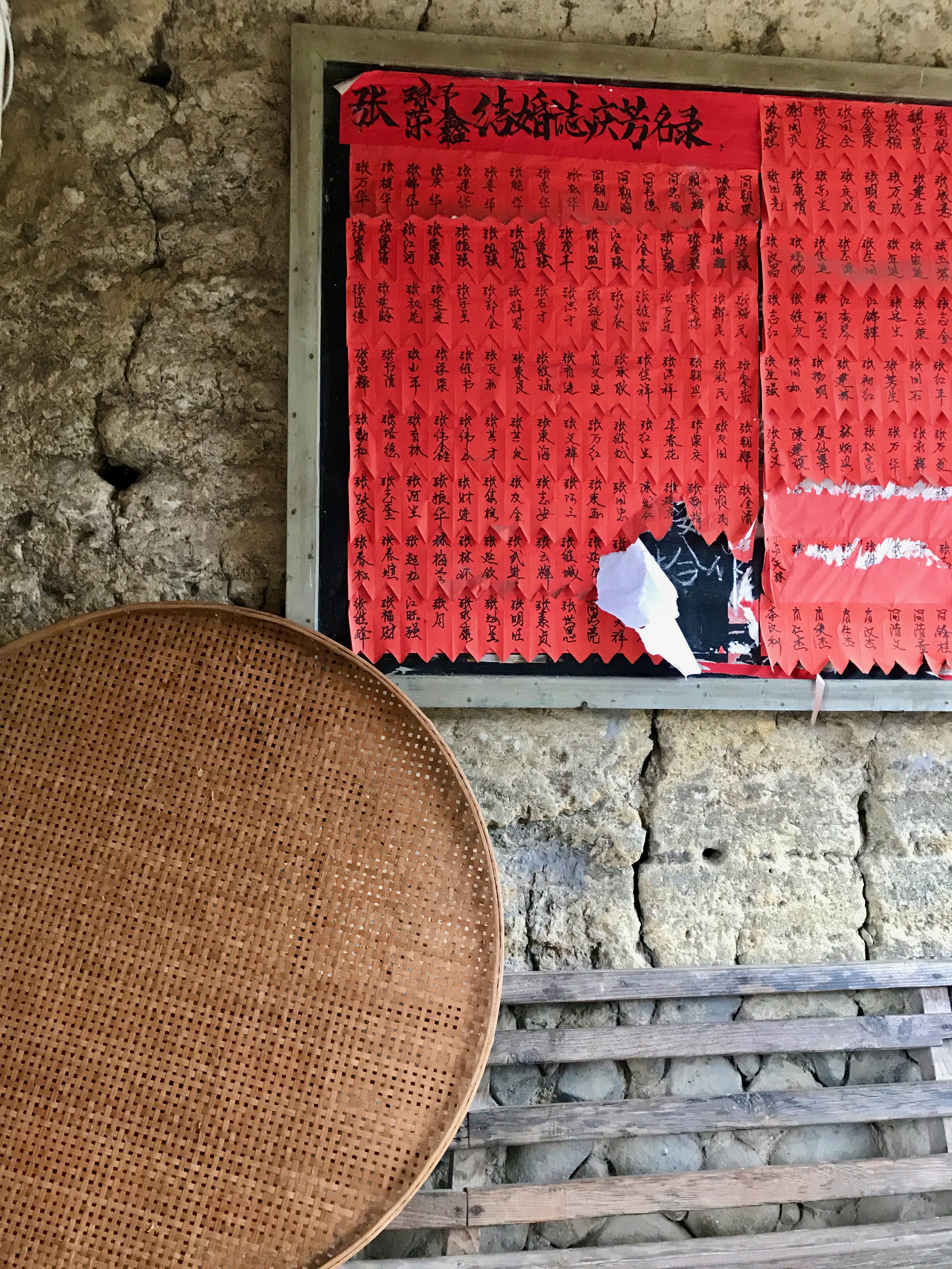 Plusieurs maisons de styles variés surplombent une paisible rivière, et la bonne surprise fut que nous sommes arrivés en pleins préparatifs d’une fête de toute la communauté, pour célébrer un jeune ingénieur fraîchement diplômé de l’université de Xiamen. Dans la cour centrale d’un Tulou, de nombreuses femmes s’activent à concocter un véritable banquet digne d’Astérix et Obélix, poissons, viandes et même homards sont au menu ! Les hommes attendent tranquillement que tout soit prêt, jouant au mahjong, fumant des cigarettes ou surveillant d’un coin de l’oeil les dons des fameuses hongbao, ces petites enveloppes rouges dans lesquelles sont glissés quelques billets à l’attention du héros du jour…