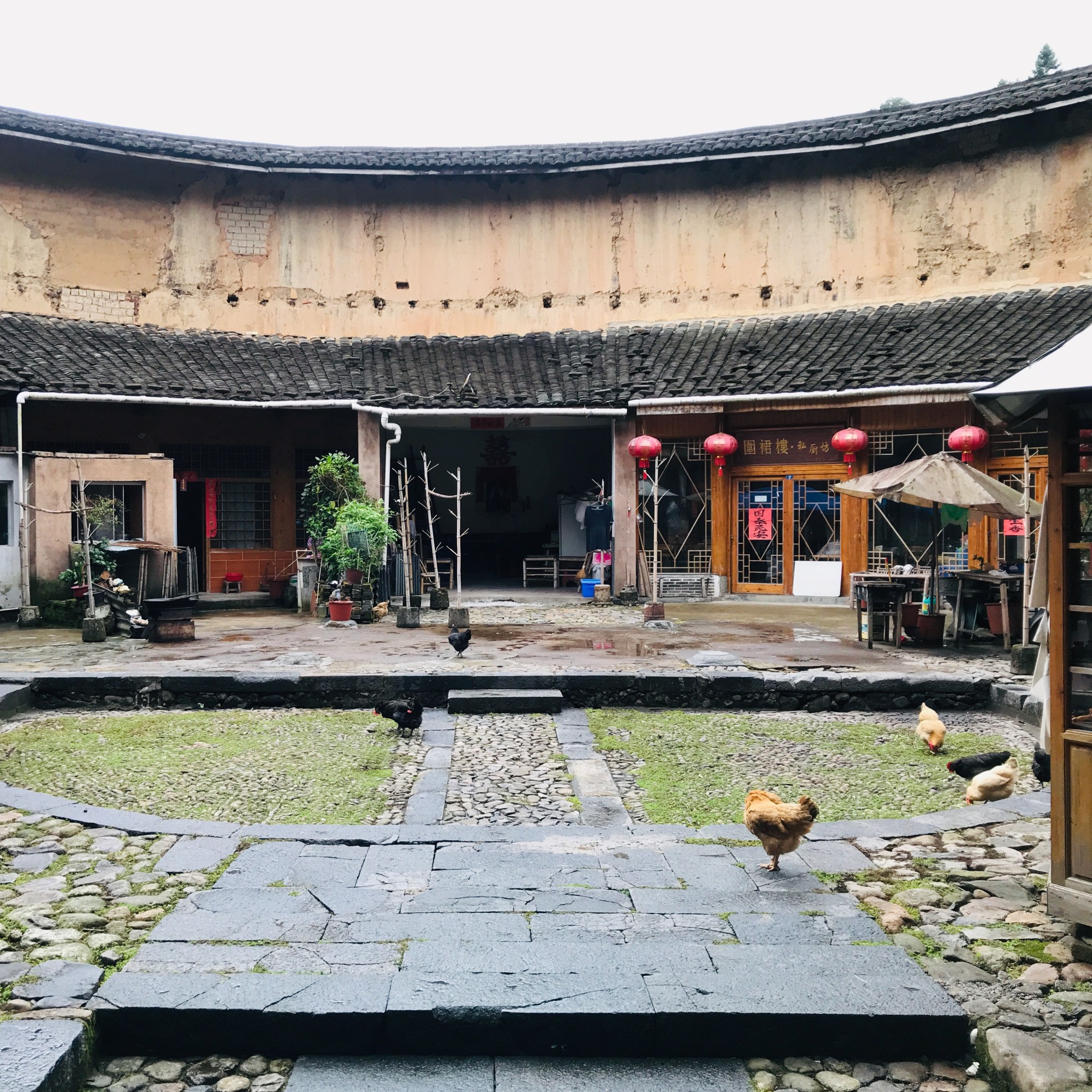 Après tout un tour dans la région, entre cultures de thé et de riz en terrasse, flâneries paisibles dans ces bâtisses parfois vides, parfois encore habitées, et vues imprenables en hauteur sur ces villages pittoresques, nous arrivons dans le comté de Nanjing, où la maison Weiqunlou, sera notre gîte du soir… Cette maison Tulou ronde est atypique puisque sa construction n’a été terminée qu’à moitié, faute de moyens et d’implication de la descendance… mais qu’à cela ne tienne, elle accueille avec générosité les visiteurs en quête d’authenticité et de simplicité.