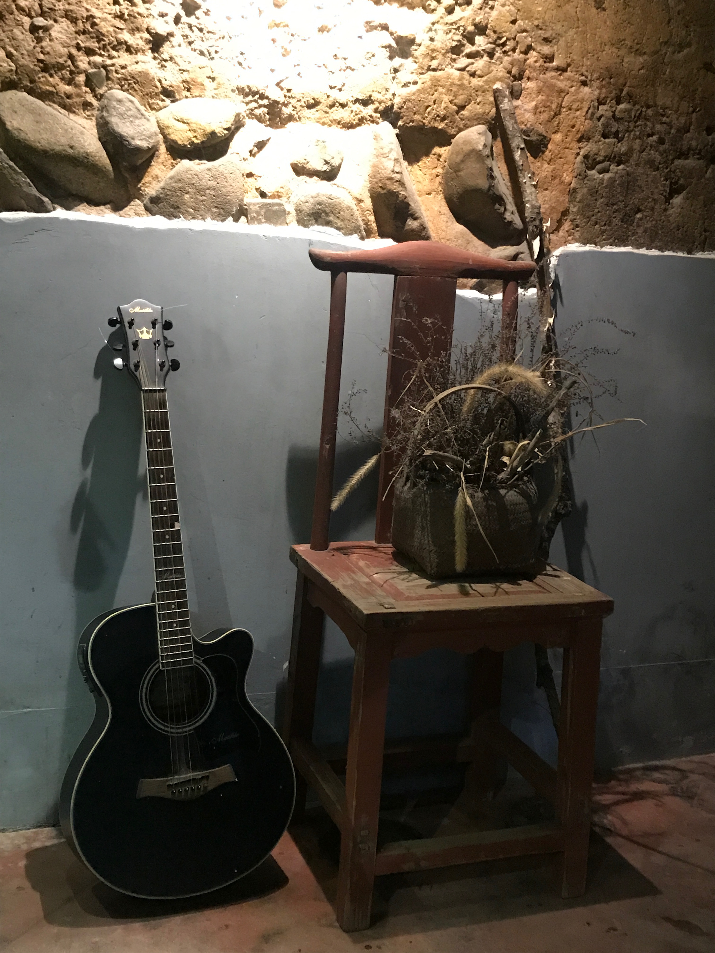 Entre les gouttes, le village pépie d’étudiants qui s’exercent à l’art de la peinture, avec plus ou moins de talent… Après un diner 100% local, très simple et savoureux (certes, nous n’avions pas déjeuné donc nous étions affamés !), nous trainons dans un bar, tenu par un jeune couple et leurs trois chiens, retrouvant ces étudiants très gais sous l’effet de l’alcool local, et très enclins à nous sortir fièrement leurs quelques mots d’anglais pour nous dire « vous êtes cool ! »…