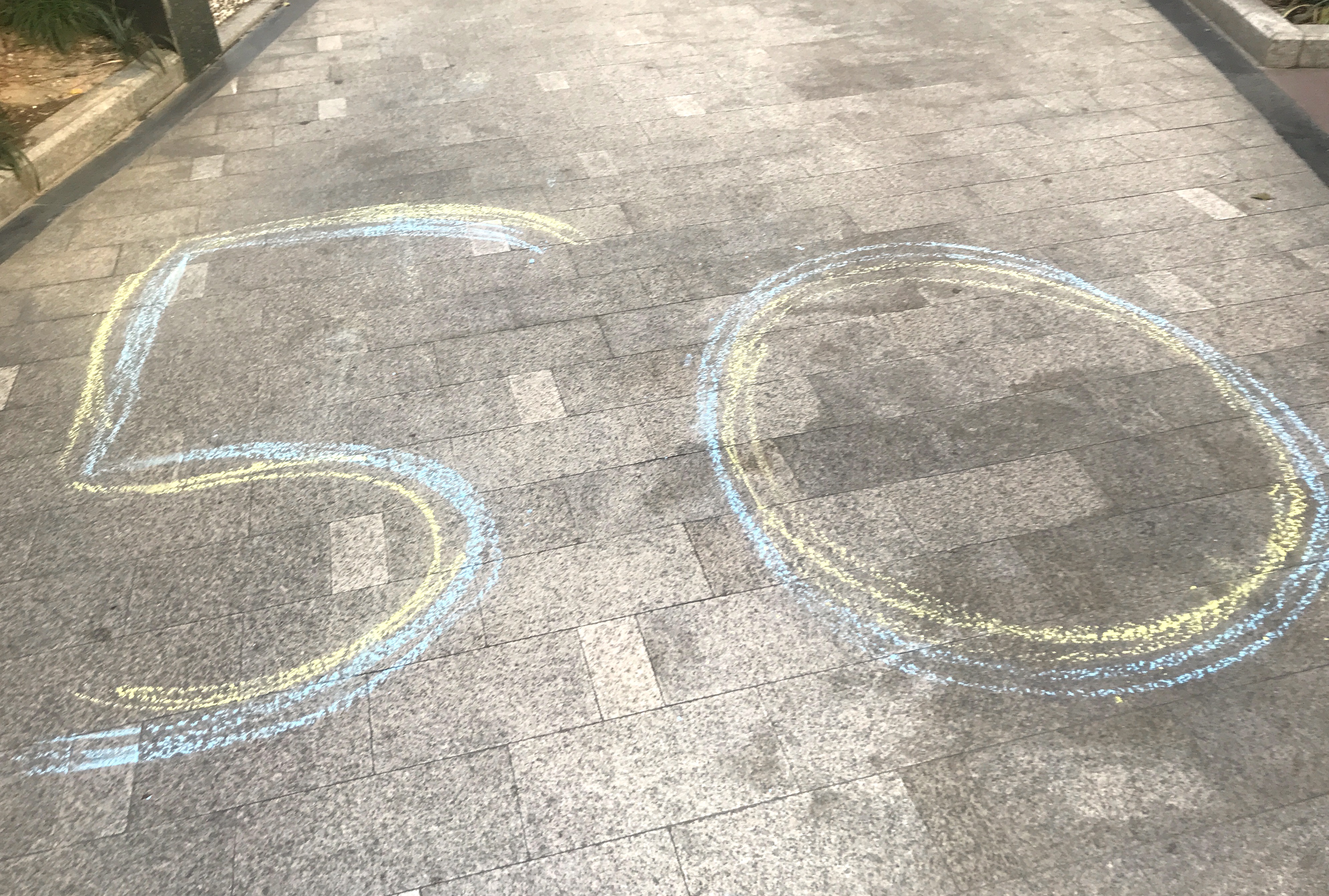 L’après-midi fut entrecoupée d’une petite animation amicale du comité des fêtes shanghaien avec une chanson sous les fenêtres, une magnifique banderole et redécoration du bitume dans l’allée. Nous sommes prêts pour monter une agence événementielle…
