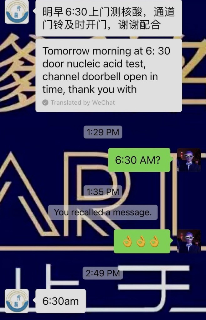 A l’approche du dernier jour, le médecin en charge de la santé des résidents envoie un message pour prévenir de la date du dernier test PCR. Ici on n’est pas là pour rigoler, le test eut lieu dimanche à 6h30… oui du matin !