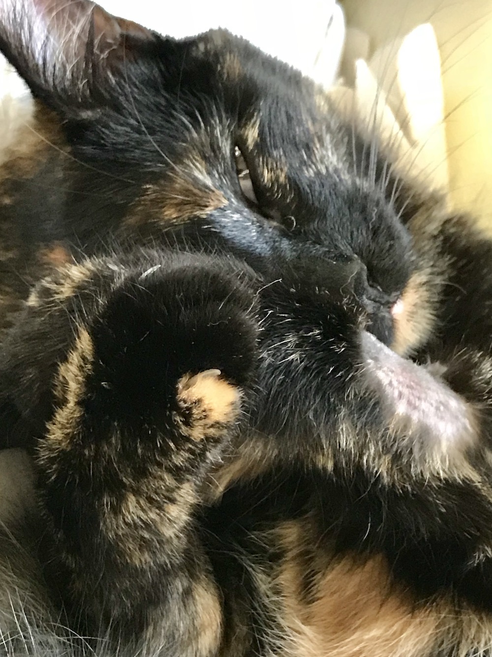 Puis un jour du mois de février, premier déménagement, me voilà embarquée dans ma famille d’adoption. Attention les moustaches, je prends mes quartiers dans une résidence appelée « Windsor Place » (tiens, tiens…). Là, j’y coule de paisibles années, je découvre la vie en compagnie d’humains, certains très grands, d’autres très câlins, trop parfois à mon goût… Car je suis une chatte au pelage « écailles de tortue », race réputée pour son côté sauvage et peu tactile. Mais peu à peu, je prends goût à cette présence rassurante, qui de plus, me nourrit et me bichonne, rrrrooooonnnnnnnn !