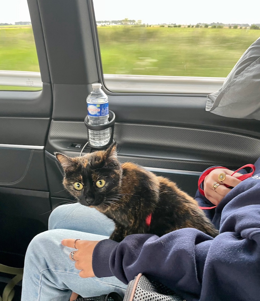 C’était trop beau pour durer. A la joie de retrouver mes deux maitresses, succède le stress d’un nouveau départ, d’une nouvelle visite chez le vétérinaire (qui me déclare encore « apte »), et d’un long trajet en voiture vers une nouvelle destination. Adieu pins, douce chaleur et vers de terre, nous débarquons dans un pays où même la langue des humains ne ressemble à aucune que celles déjà entendues (car je suis une chatte bilingue mandarin-français je vous rappelle !).
