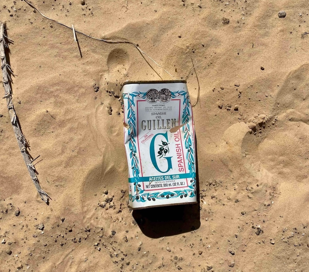 Le plus marquant de ces premières heures pour moi sera la quantité désolante de déchets, qui sortent de la ville de Chinguetti pour s’étirer loin vers cet océan d’ocre… Des bouteilles en plastique, des morceaux de chaussures, des bidons, des plastiques volants, pauvre planète… C’est à cause du vent, nous explique Mohamed. Il charrie jusqu’à loin les produits de la société de consommation occidentale qui a contaminé cette cité reculée. Les déchets naturels du passé se recyclaient tout seuls, et les populations locales n’ont de toute évidence pas encore pris à bras le corps ce changement. Il y a donc une belle marge de progression pour la collecte des déchets, même si le recyclage opère des débuts prometteurs sur certaines filières, comme celle des pneus ou des carcasses de vieilles voitures.