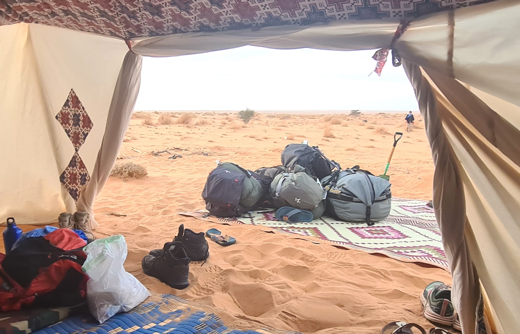 Après cette première nuit mauritanienne, répartis à deux ou trois dans nos cases arrondies – début de la cohabitation entre les ronfleurs et les autres, mais surtout dernière nuit sur un vrai lit – nous nous réveillons tout excités à 6h30.