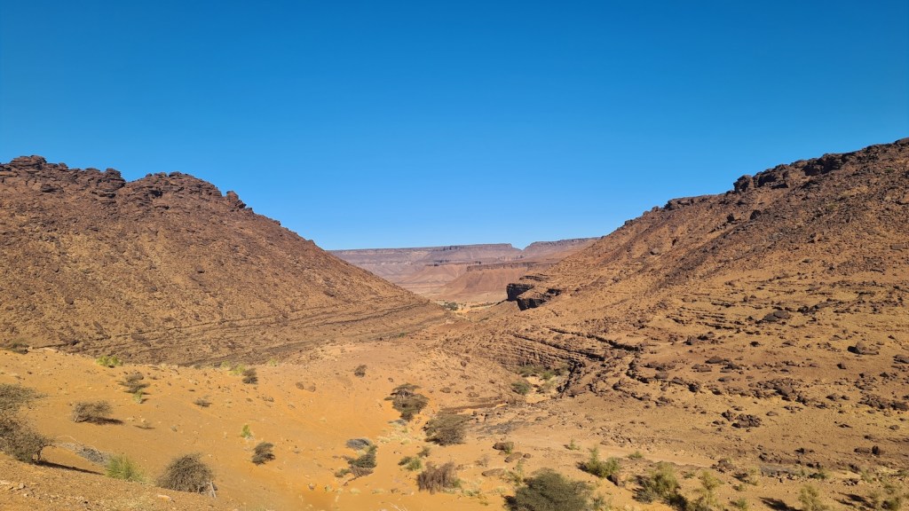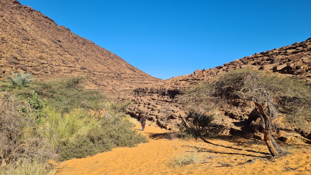 Cette belle journée reste cependant porteuse de belles promesses : une dernière marche pour sortir du désert, la découverte de la mythique oasis de Terjit, la visite d’Atar, une dernière nuit en auberge avec – détail non négligeable – un vrai lit et une douche !