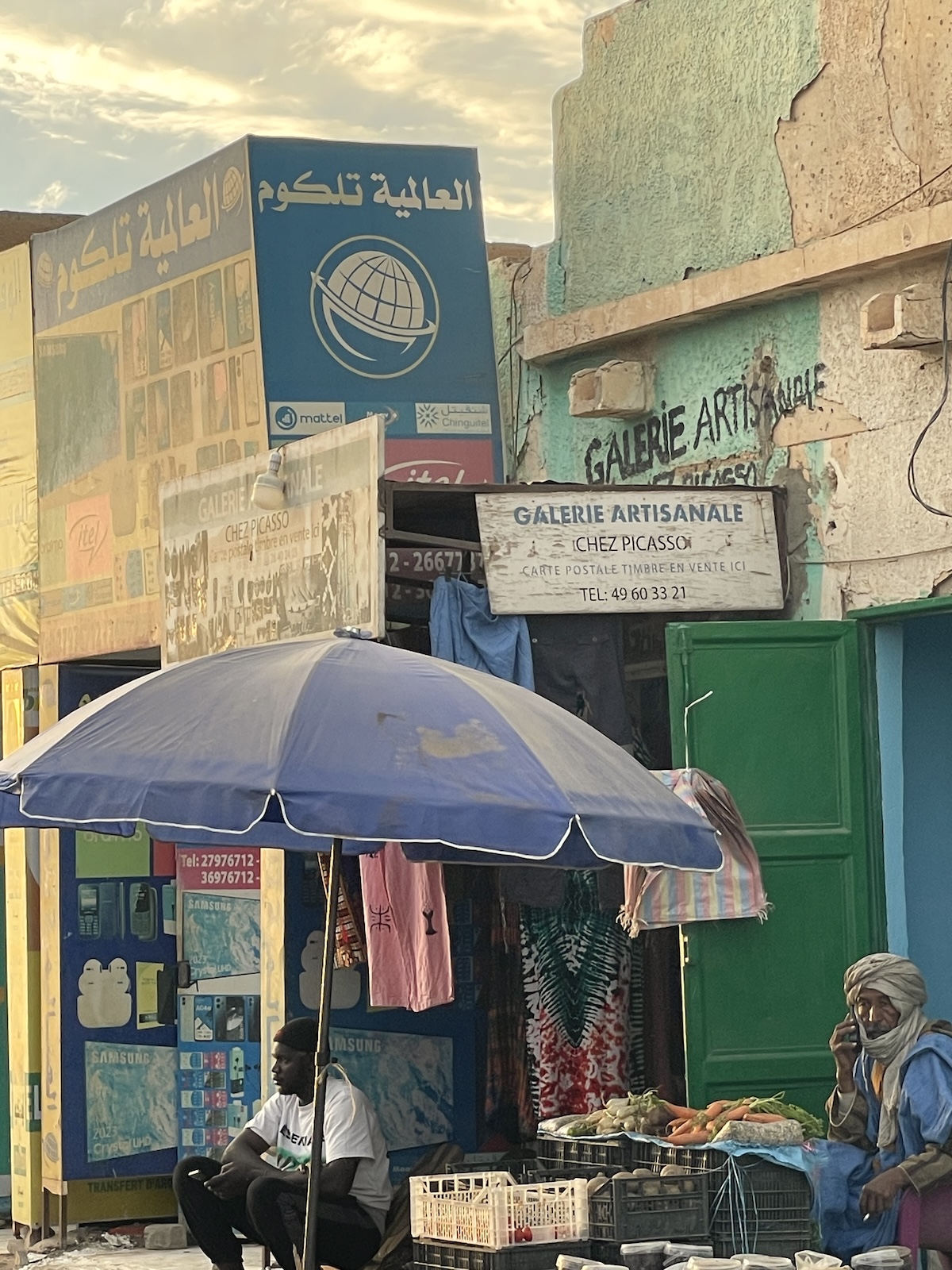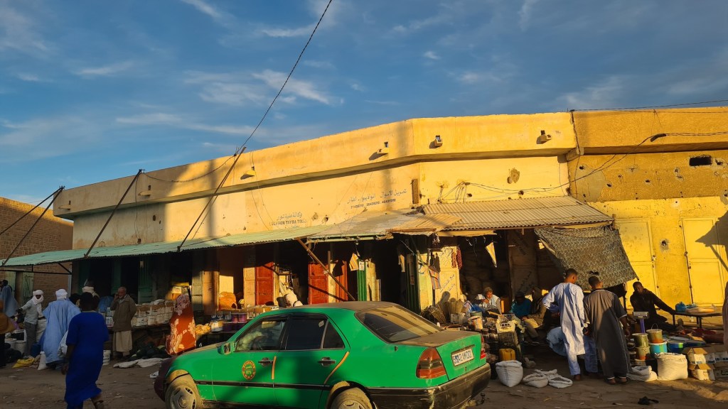 Après une douche fort appréciée, nous partons à pied avec le fidèle Boulah vers le centre d’Atar. Capitale de la région de l’Adrar, cette ville caravanière comptait quelques 35.000 habitants en 2023. Elle est connue pour son commerce de dattes et son rôle de carrefour majeur pour le tourisme dans le désert. Elle a accueilli une importante garnison militaire française à l’époque de la colonisation.